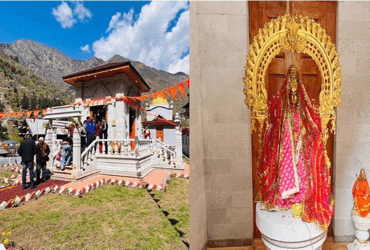 The Sharda Temple at Teetwal and the idol of Sharda Maa donated by the Sringeri Matha | Image Source: Navbharat Times